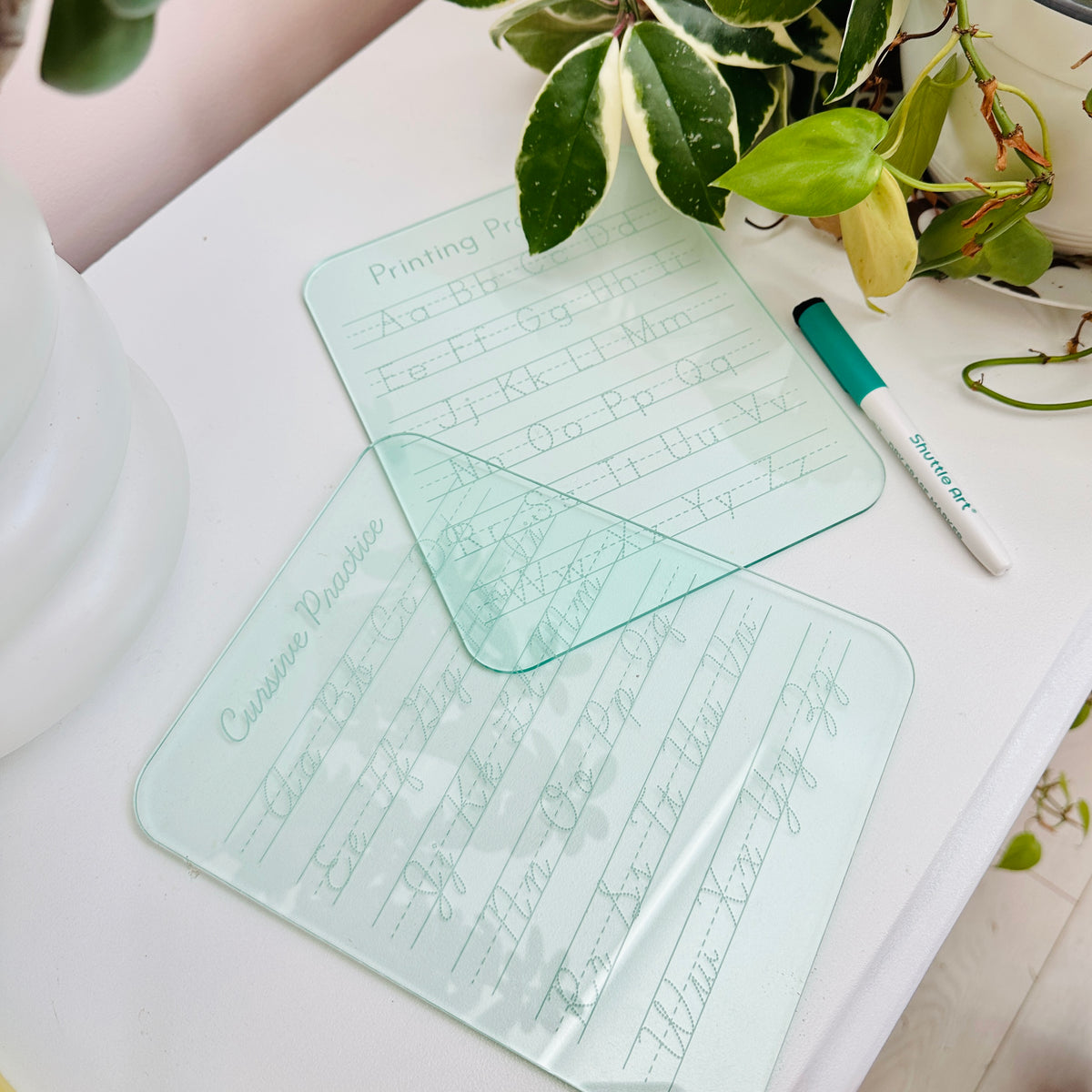 The perfect tool for your littles to practice their printing and/or cursive. To be used with a dry erase marker, you can wipe away easily for endless practice.